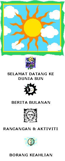 Majlis Penganugerahan Sun '99 Sudah tiba masanya ahli-ahli sun diberikan penghargaan atas kegigihan mereka menaikkan nama kelab di mata dunia. Inilah masa yang ditunggu-tunggu oleh setiap ahli dan sun-sun di seluruh tanahair. Maljlis ini dijangkakan akan berlangsung pada akhir bulan Mei ini yang bertempat di Taman Pantun,UKM. Sebanyak 12 kategori dipertandingkan dan antara kategori yang menjadi kegilaan sun adalah Sun Jalang dan Sun Terbaik. Senat telah memutuskan bahawa antara 3-5 orang calon dipertandingkan bagi setiap kategori. Borang pemilihan calon akan diedarkan kepada ahli sedikit masa lagi dan setiap ahli perlu memilih calon yang terbaik sahaja bagi setiap kategori. Nantikan kemunculannya.